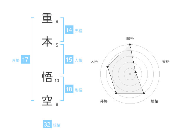 重本 悟空さんの総格は32画の5点!