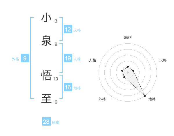 小泉 悟至さんを姓名の画数から五運を鑑定