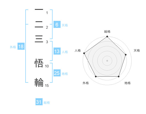 一二三 悟輪さんを姓名の画数から五運を鑑定