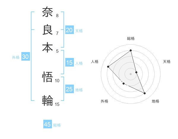 奈良本 悟輪さんを姓名の画数から五運を鑑定