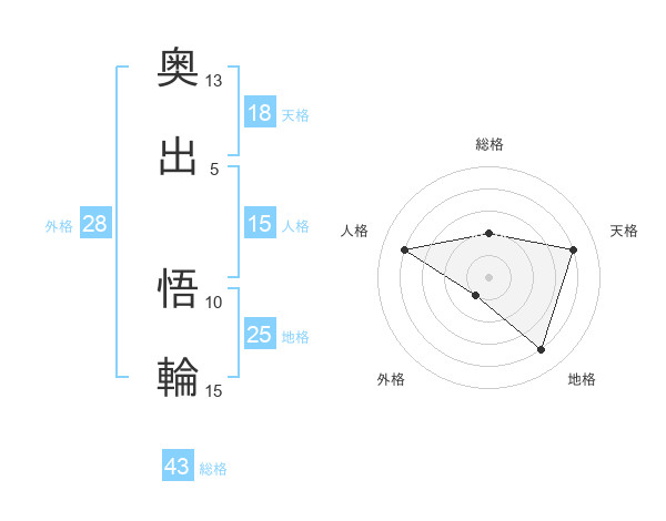 奥出 悟輪さんを姓名の画数から五運を鑑定