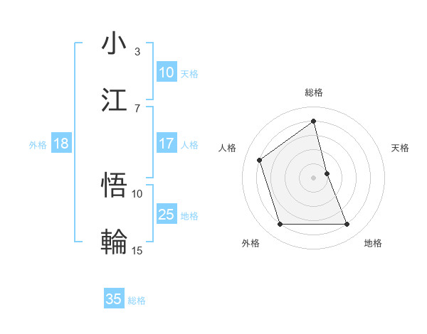 小江 悟輪さんを姓名の画数から五運を鑑定