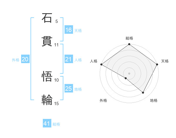 石貫 悟輪さんを姓名の画数から五運を鑑定