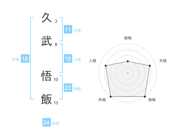 久武 悟飯さんの総格は34画の2点!