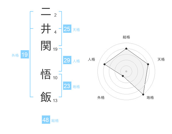 二井関 悟飯さんを姓名の画数から五運を鑑定