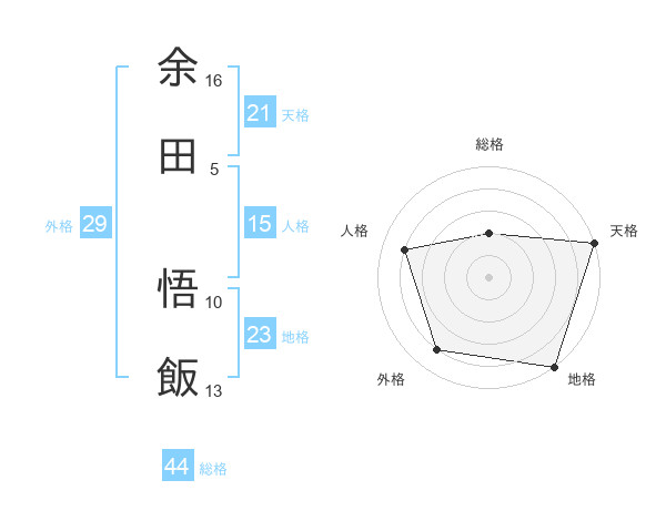 余田 悟飯さんの総格は44画の2点!