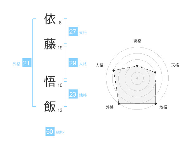 依藤 悟飯さんの総格は50画の2点!