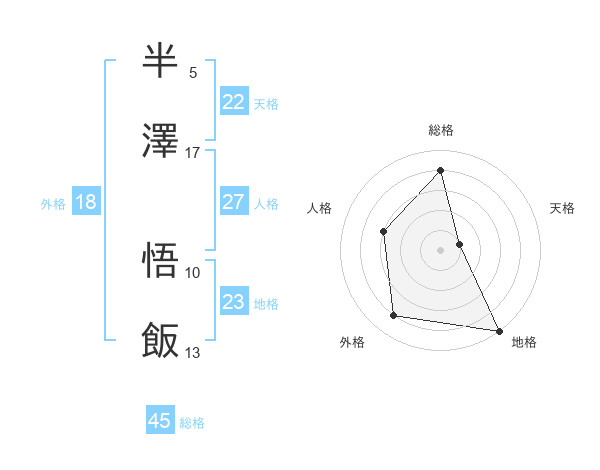 半澤 悟飯さんの総格は45画の4点!