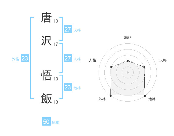 唐沢 悟飯さんの外格は23画の5点!