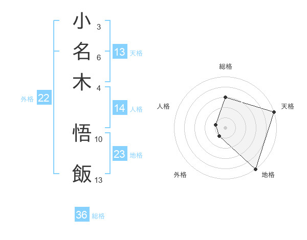小名木 悟飯さんの外格は22画の1点!