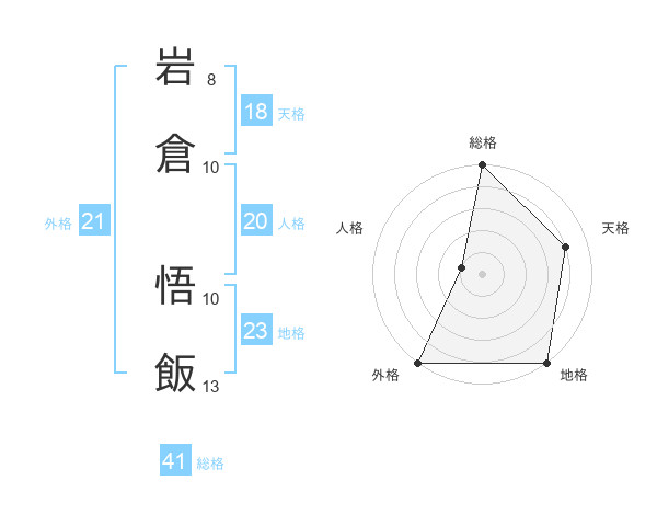 岩倉 悟飯さんの天格は18画の4点!