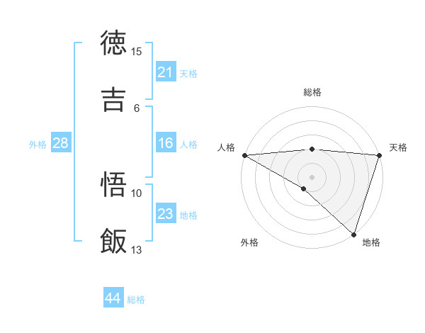 徳吉 悟飯さんの総格は44画の2点!