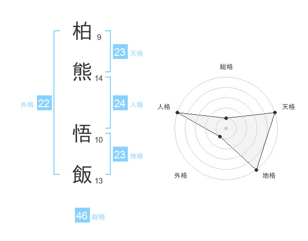 柏熊 悟飯さんの天格は23画の5点!