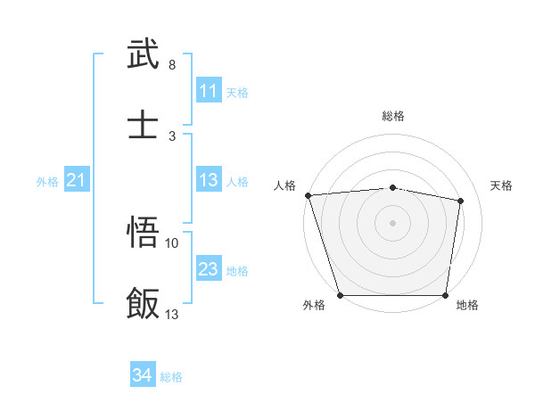 武士 悟飯さんの総格は34画の2点!