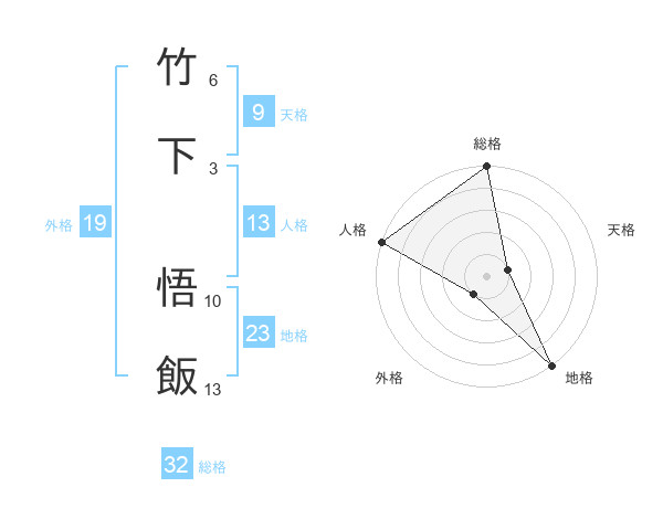 竹下 悟飯さんを姓名の画数から五運を鑑定