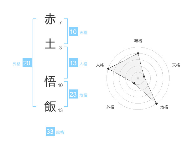 赤土 悟飯さんの総格は33画の4点!