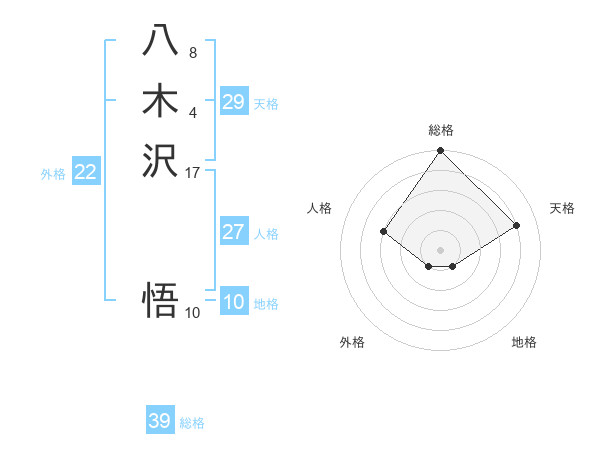 八木沢 悟さんの総格は39画の5点!