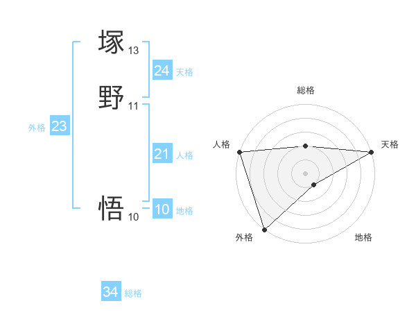 塚野 悟さんの総格は34画の2点!