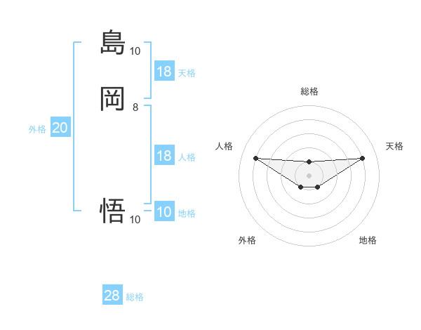 島岡 悟さんの天格は18画の4点!