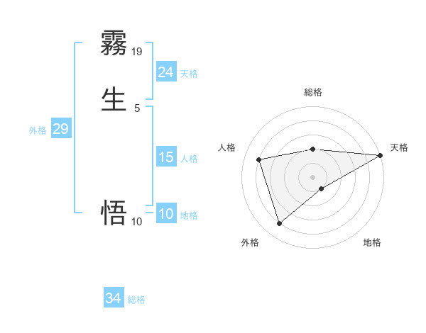 霧生 悟さんの天格は24画の5点!