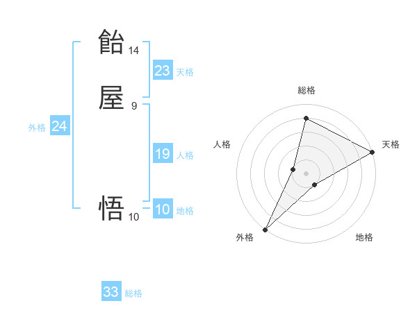 飴屋 悟さんの総格は33画の4点!