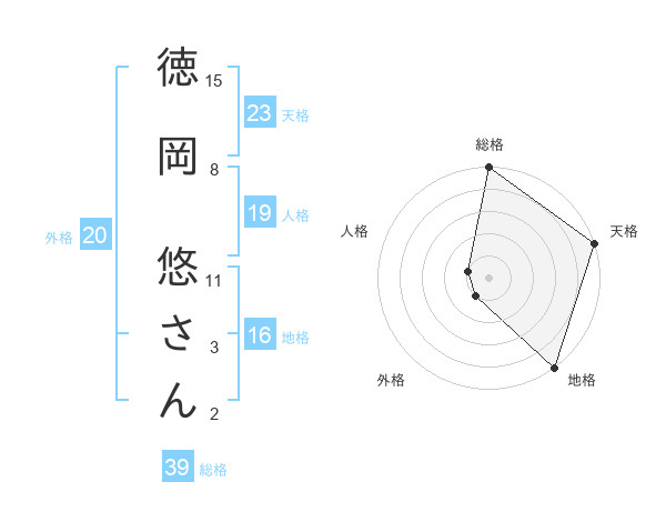 徳岡 悠さんさんの天格は23画の5点!