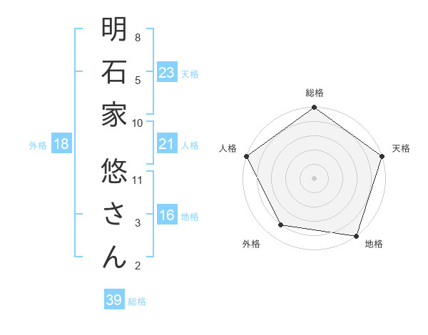 明石家 悠さんさんの総格は39画の5点!