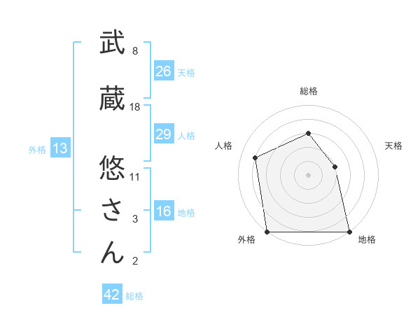 武蔵 悠さんさんの外格は13画の5点!