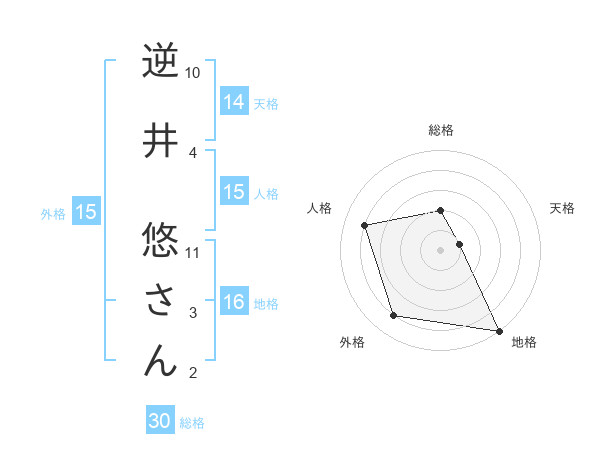 逆井 悠さんさんを姓名の画数から五運を鑑定