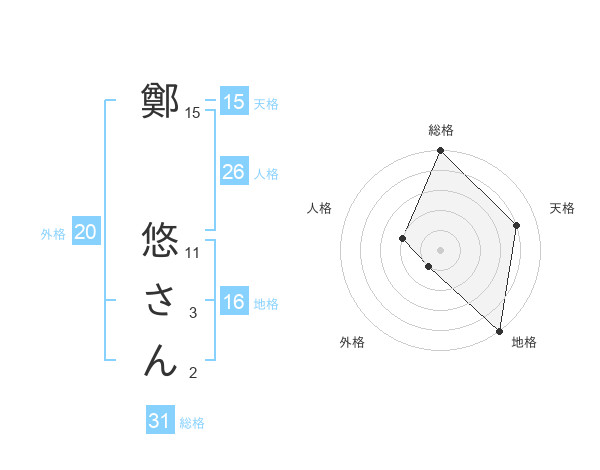 鄭 悠さんさんを姓名の画数から五運を鑑定