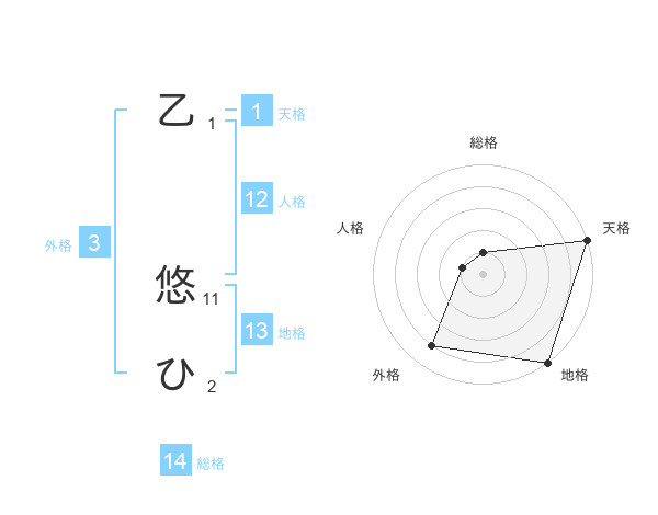 乙 悠ひさんの外格は3画の4点!