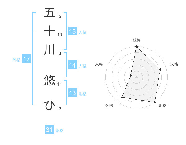 五十川 悠ひさんを姓名の画数から五運を鑑定