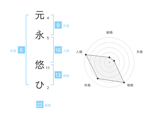 元永 悠ひさんを姓名の画数から五運を鑑定