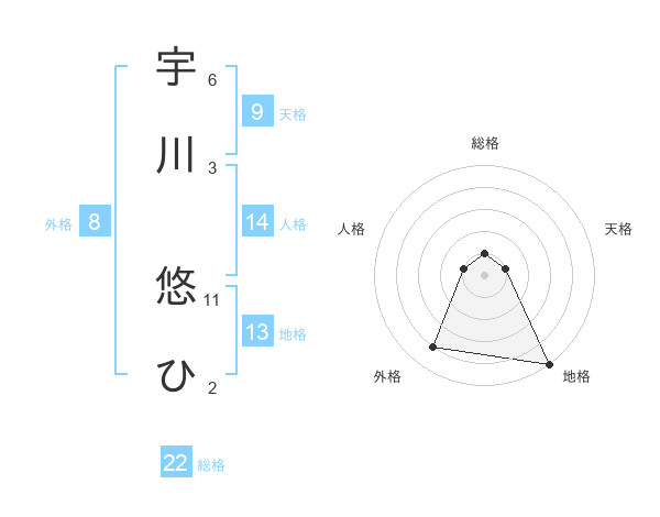 宇川 悠ひさんを姓名の画数から五運を鑑定