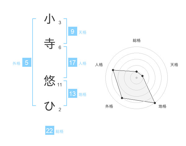 小寺 悠ひさんの総格は22画の1点