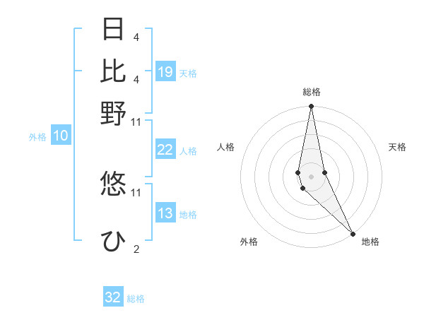 日比野 悠ひさんの総格は32画の5点!
