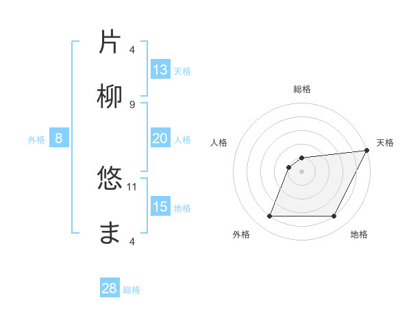 片柳 悠まさんを姓名の画数から五運を鑑定