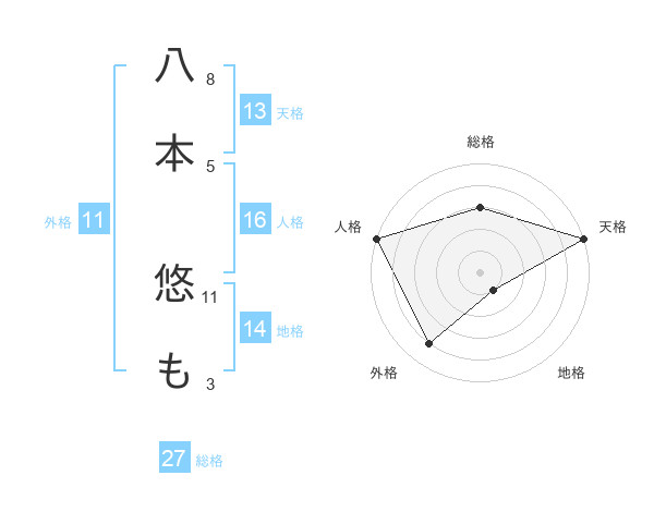 八本 悠もさんの外格は11画の4点!