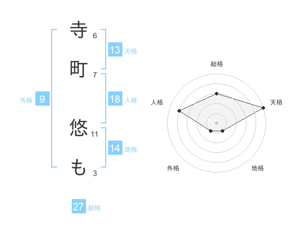 寺町 悠もさんの総格は27画の3点!