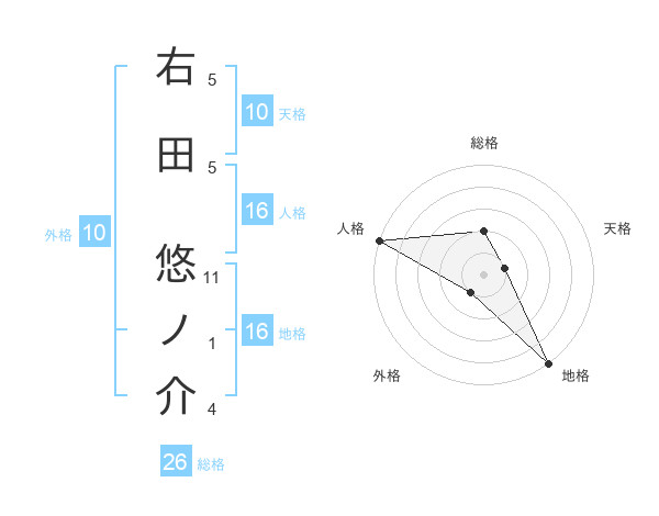 右田 悠ノ介さんを姓名の画数から五運を鑑定