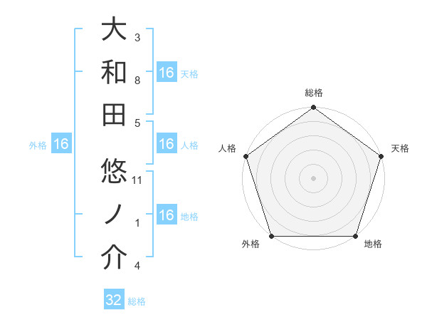 大和田 悠ノ介さんを姓名の画数から五運を鑑定