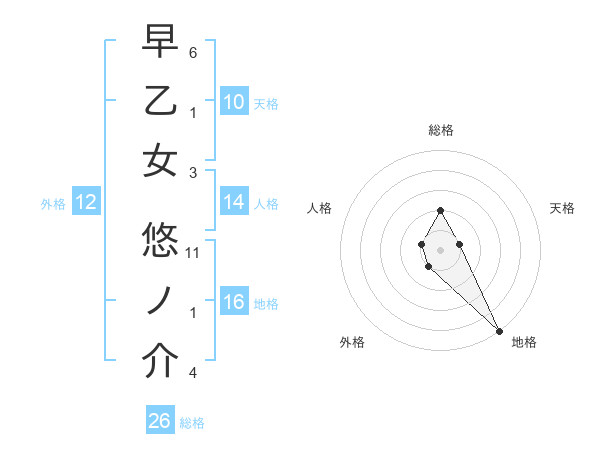 早乙女 悠ノ介さんを姓名の画数から五運を鑑定