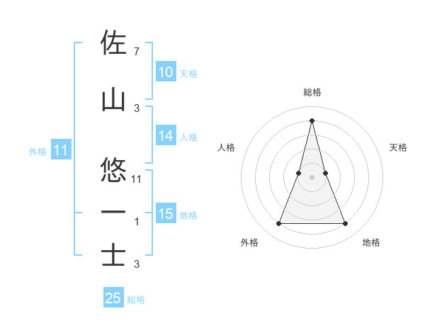 佐山 悠一士さんの総格は25画の4点!