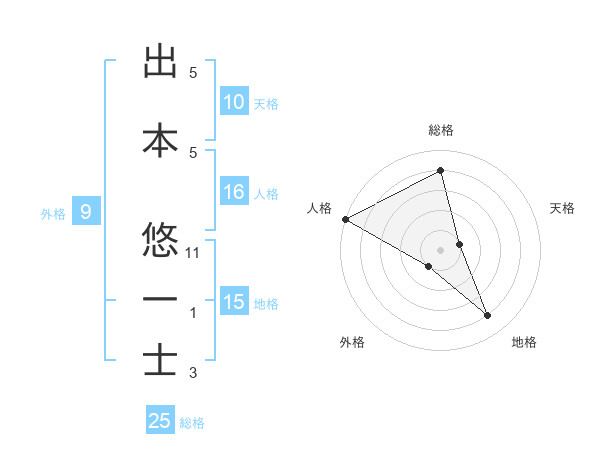 出本 悠一士さんの総格は25画の4点!
