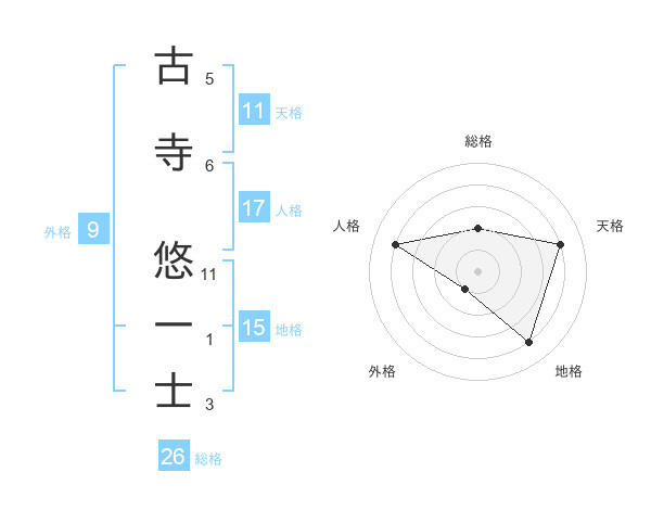古寺 悠一士さんの天格は11画の4点!