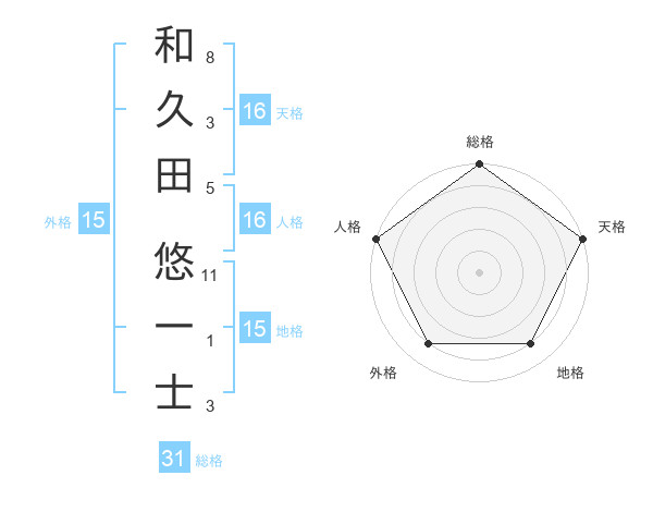 和久田 悠一士さんを姓名の画数から五運を鑑定