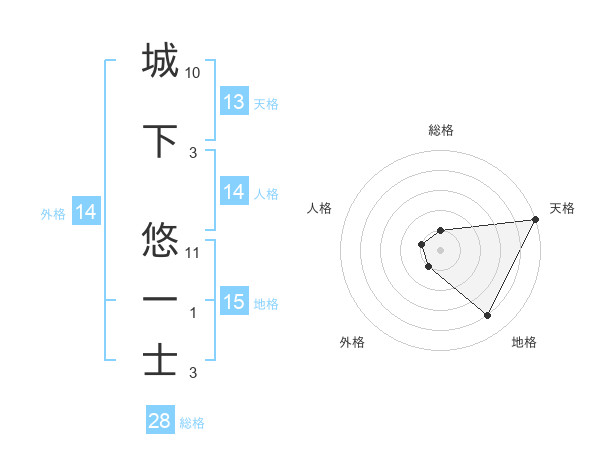城下 悠一士さんの天格は13画の5点!