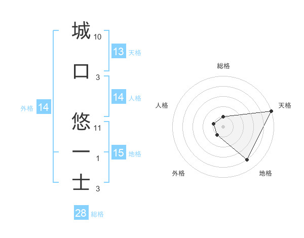 城口 悠一士さんを姓名の画数から五運を鑑定