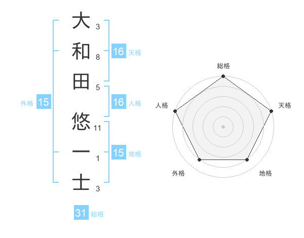 大和田 悠一士さんの総格は31画の5点!