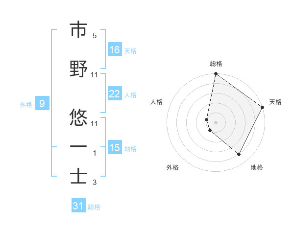 市野 悠一士さんを姓名の画数から五運を鑑定